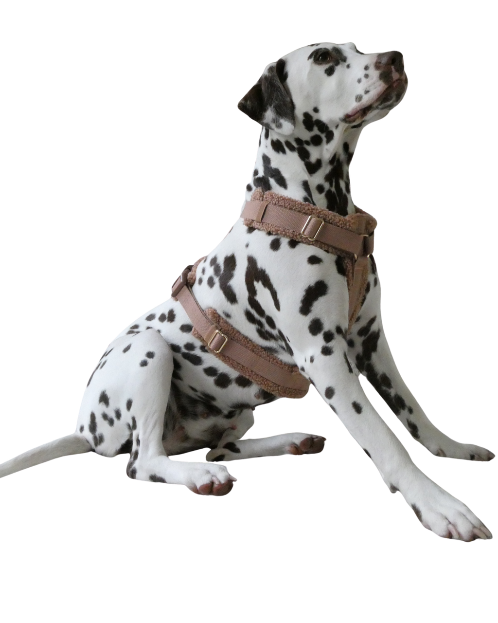 Our Signature Bundle includes a premium sherpa dog harness and a luxury vegan leather dog leash with soft sherpa accents and a padded handle. Designed for comfort, durability, and stylish everyday walks, this designer dog walking set blends functionality with timeless aesthetics.